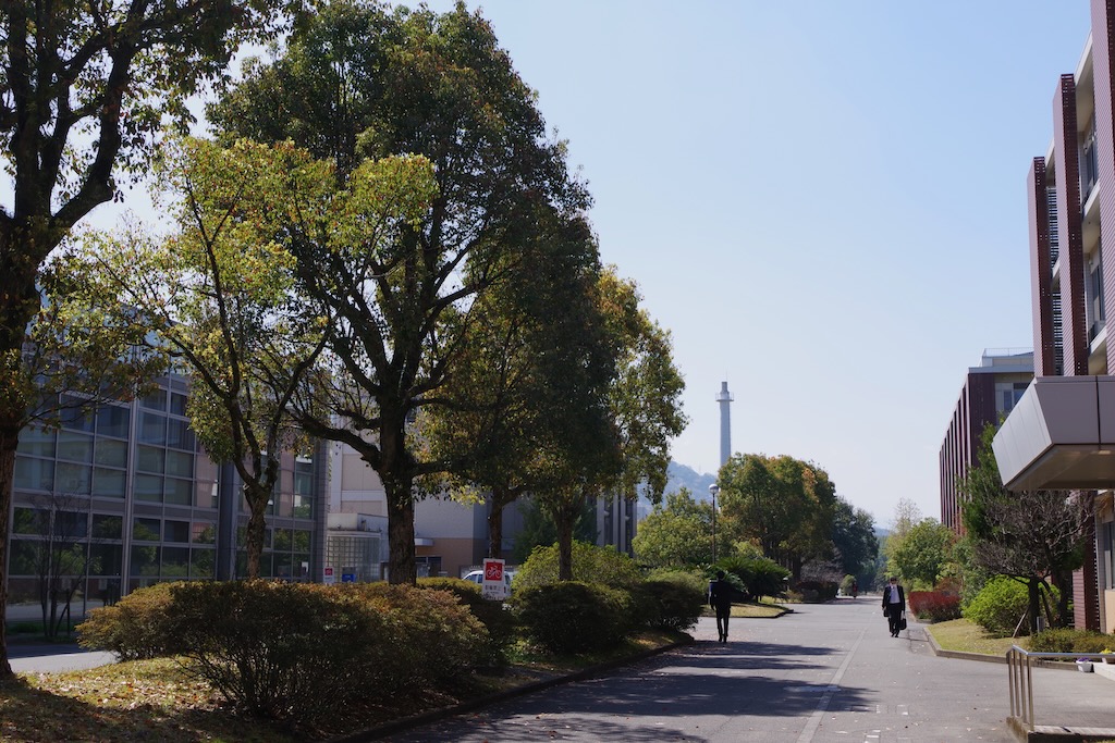 旦野原キャンパスは、大分市南部の丘陵地に位置し、緑が多く静かな環境にあります。静かな住宅地に隣接しており、学修・研究に集中しやすい立地です。春には桜、秋には紅葉が楽しめ、四季の変化を身近に感じることができます。